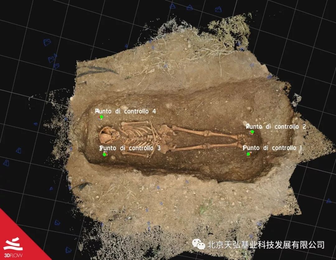 墓葬切口内的标记已由全站仪进行定位,并以.ply格式导出。通过使用软件的“注册(拼接)”工具,在为模型本身添加控制点之后,模型就被缩放并与现场检查的点云对齐了。