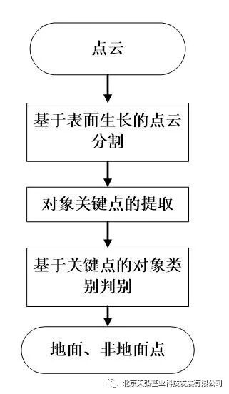 MPTPD方法包括基于表面生长的点云分割、对象关键点提取、基于关键点的对象类别判别等3个主要步骤。整体技术框架如图1所示;另外,图2展示了某一点云的各个处理步骤的效果。另外,文中数字“1”代表“非地面点类”,数字“2”代表“地面点类”。